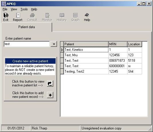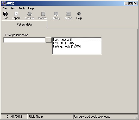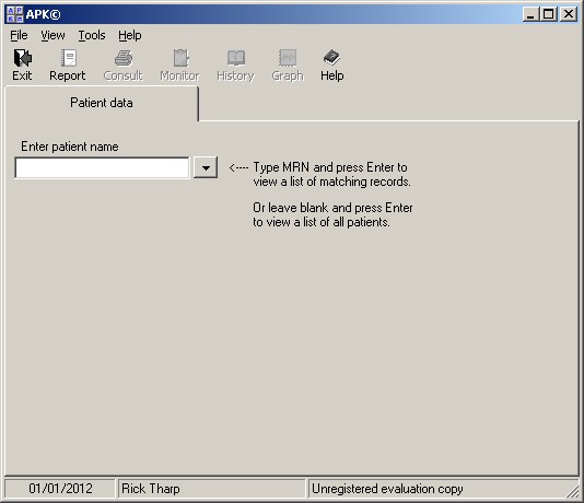 APK received a complete makeover in version 3.5.4. The most apparent change is the patient database interface. The program now starts with a simple search box. Type in a patient name to find matching records, or press Enter to list all patients. The user cannot add a new patient until record search has been performed. The intent is to cut down on entry of duplicate records for the same patient.