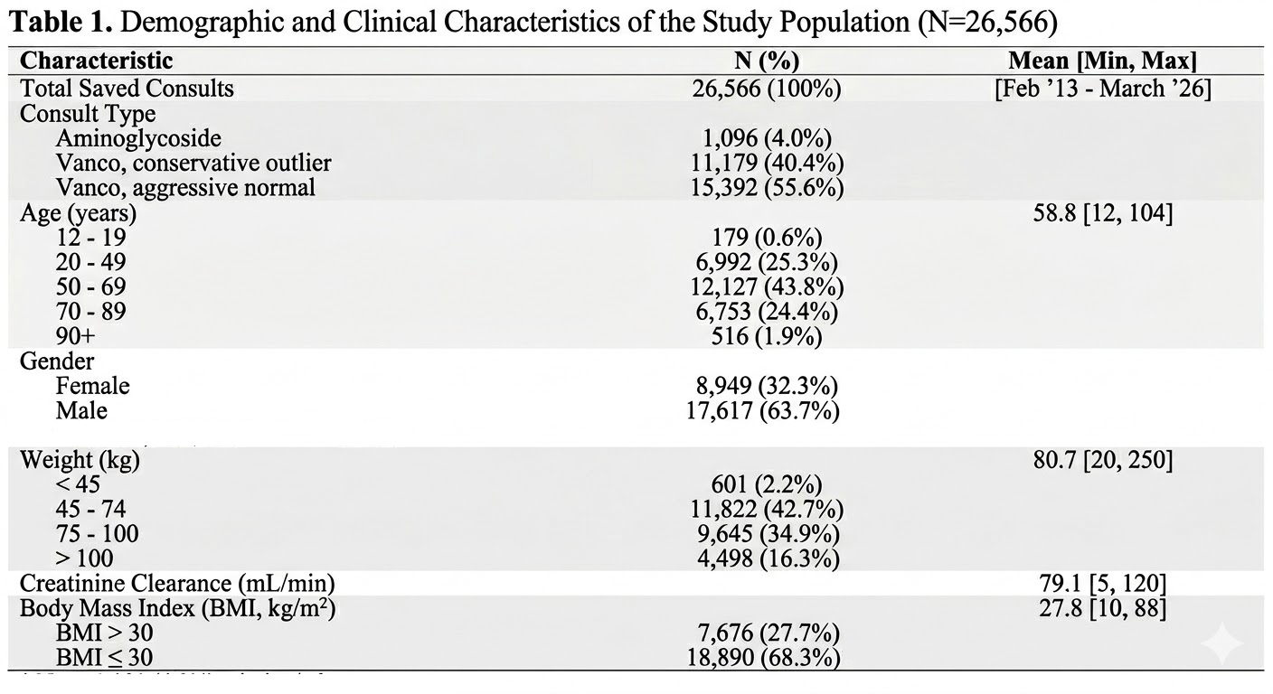 Note the dataset is intentionally minimal, including only date, model used, age, gender, height, weight, serum creatinine, creatinine clearance (CrCL), elimination rate (Kel), and volume of distribution (Vd). Also, there is no formal quality control applied to these data. As a result, some entries may be fictional, incorrectly entered, or duplicated. The data were collected anonymously, in accordance with our website privacy policy, from registered users worldwide.
